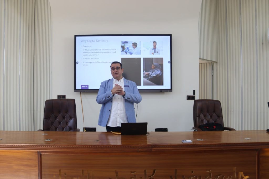 The workshop aimed to introduce participants to the fundamentals of Exocad, a leading software in the field of digital dental design, and to demonstrate its practical applications in complete oral rehabilitation using the latest digital protocols. This contributes to enhancing the efficiency and skills of the College of Dentistry’s staff and students in modern digital technologies.