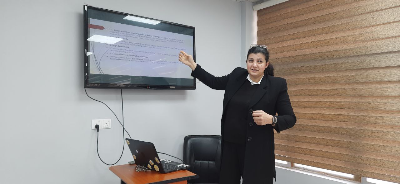The training covered several key topics, including an overview of the ELISA technique, its applications, working principles, procedural steps, advantages and limitations, as well as its different types. There are four main types of ELISA: Direct ELISA, Indirect ELISA, Sandwich ELISA, and Competitive ELISA. These variations provide flexibility, allowing adjustments based on available antibodies, desired results, or sample complexity.