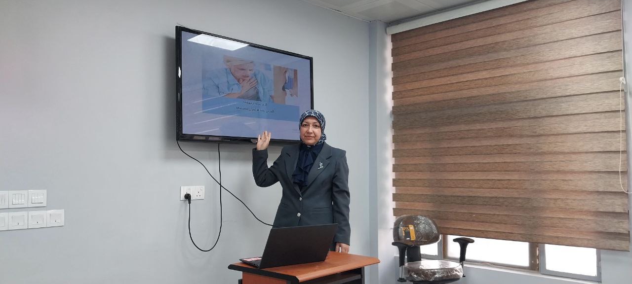 Under the patronage of the esteemed Dean of the College of Dentistry, Professor Dr. Raghad Abdul Razzaq Mohammed, the College of Dentistry at the University of Baghdad organized a scientific seminar entitled “Asthma: Causes and Triggers”. The seminar was delivered by Assistant Lecturer Najwan Mohammed Saeed and attended by a number of faculty members.