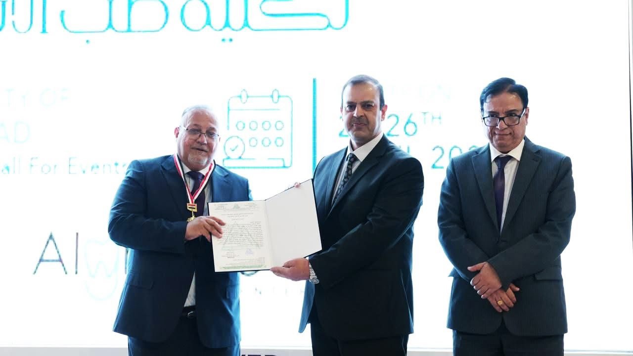 The Rasikh Technical Scientific Association honored Professor Dr. Raghd Abdulrazzaq Al‑Hashimi, the esteemed Dean of the College of Dentistry at the University of Baghdad, by awarding him the “Rasikh Technical” Medal on April 25, 2025, in recognition of his exceptional efforts in organizing and managing the scientific conference held by the college at Al‑Hakim Hall from April 25 to 26, 2025.