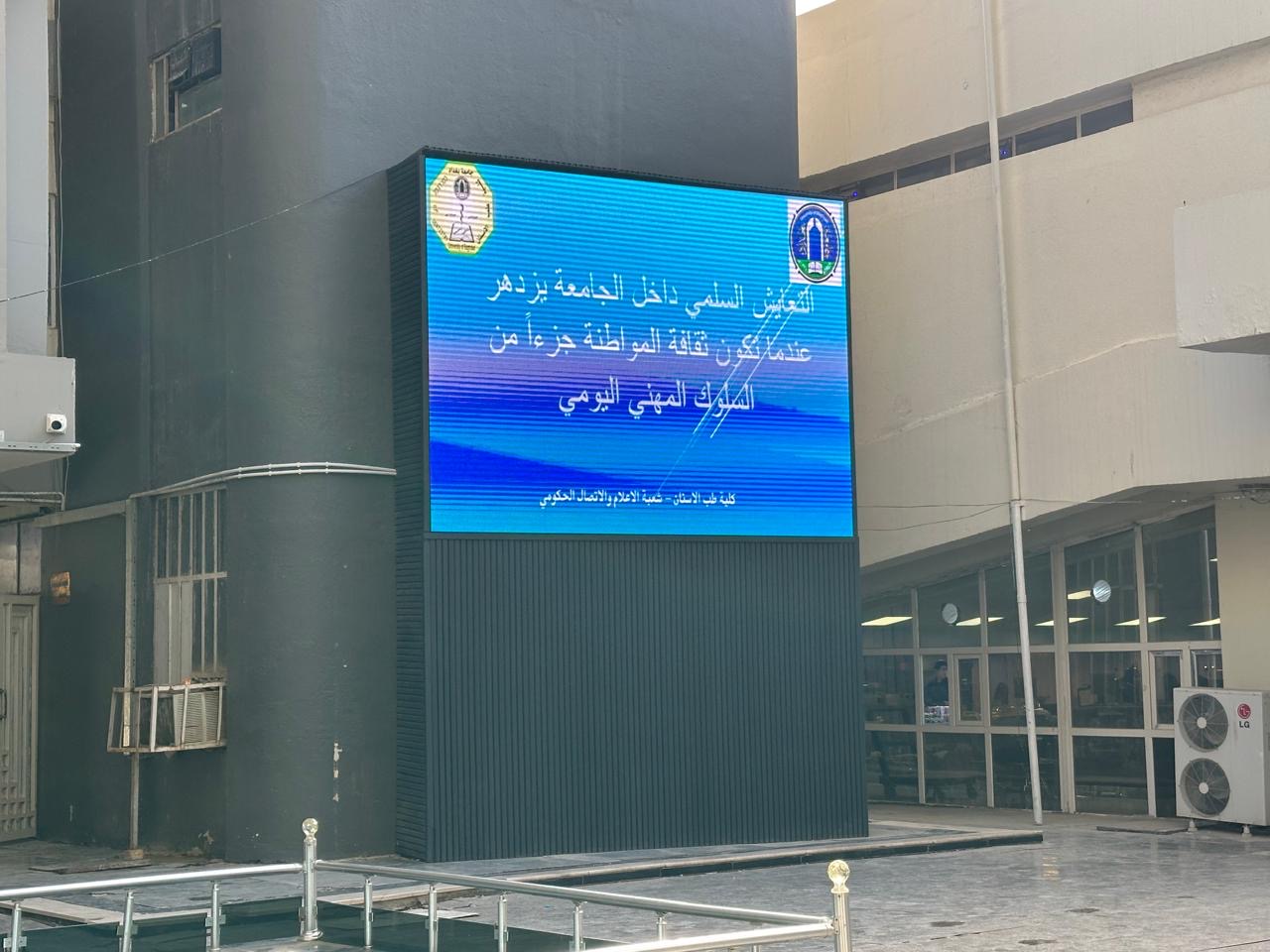 the College of Dentistry at the University of Baghdad — through the Media and Government Communication Division — organized awareness and educational campaigns that included publishing a series of electronic posters on digital display boards inside the college. The initiative aimed to instill the culture of citizenship and strengthen the values of peaceful coexistence among members of the university community.