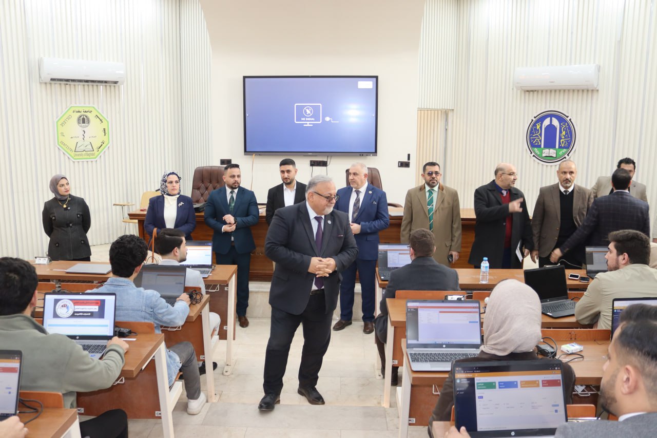 The attendees conducted an inspection tour of the examination halls to ensure the smooth and effective conduct of the examination, in accordance with established academic standards. Professor Dr. Raghad Abdul-Razzaq Al-Hashemi affirmed that the Creativity and Excellence Award is a cornerstone in developing the educational environment, motivating students to engage in scientific competition that serves their academic journey, and solidifying standards of quality and innovation in university education. He expressed his full support and best wishes to all participants.